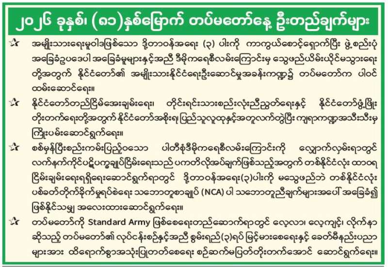 ဒီနေ့မှာတော့ မီဒီယာများမေးမြန်းနေကြတဲ့ စက်သုံးဆီကိစ္စနဲ့ပတ်သက်ပြီး ပြောကြားပါမယ်။ မနေ့ကတော့ ကျွန်တော်တို့အနေနဲ့ စက်သုံးဆီခြိုးခြံချွေတာရေးအတွက် ပြည်သူသို့ အသိပေးပန်ကြားချက်ဆိုပြီးတော့ ထုတ်ပြန်ခဲ့ပါတယ်။ ဒါကို အဓိကထုတ်ပြန်ရတဲ့ အကြောင်းအရင်းကတော့ နံပါတ်တစ် ကျွန်တော်တို့နိုင်ငံမှာ အရန်စက်သုံးဆီ မရှိလို့မဟုတ်ပါဘူး။ ထပ်ပြောပါမယ်၊ အရန်စက်သုံးဆီမရှိလို့ ထုတ်ပြန်ခဲ့ခြင်း မဟုတ်ပါဘူး။ ရေရှည်ဖြစ်လာနိုင်တဲ့ကိစ္စတွေကိုတွက်ဆပြီးတော့ ကျွန်တော်တို့ ခြိုးခြံချွေတာရေးအတွက်သာ ထုတ်ပြန်ခဲ့ခြင်း ဖြစ်ပါတယ်။ စနစ်တကျအသုံးပြုပြီးတော့ ကမ္ဘာမှာကြုံတွေ့နေရတဲ့ လောင်စာဆီအခက်အခဲကို မြန်မာနိုင်ငံအနေနဲ့ စနစ်တကျဖြတ်သန်းနိုင်ဖို့ရည်ရွယ်ပြီး ထုတ်ပြန်ခဲ့ရခြင်း ဖြစ်ပါတယ်။