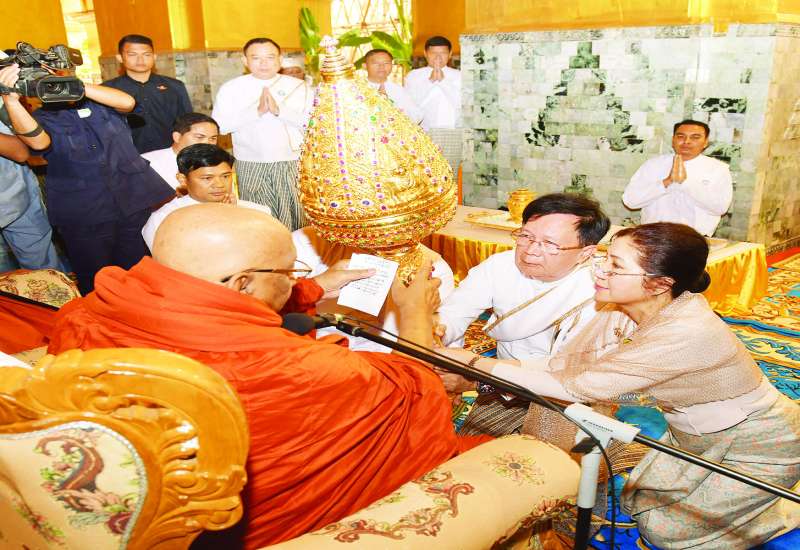 မန္တလေးငလျင်ကြီးကြောင့် ထိခိုက်ပျက်စီးမှုများဖြစ်ပေါ်ခဲ့သည့် မန္တလေးတိုင်းဒေသကြီး ချမ်းမြသာစည်မြို့နယ် ကျွန်းလုံးဥသျှောင်ရပ်ကွက်ရှိ မဟာမုနိရုပ်ရှင်တော်မြတ်ကြီး၏ ဂန္ဓကုဋိတိုက် ရွှေကျောင်းတော်ကြီးအား ဘက်စုံပြုပြင်မွမ်းမံ၍ ရတနာစိန်ဖူးတော်၊ ငှက်မြတ်နားတော်၊ ရွှေထီးတော် တင်လှူပူဇော်ခြင်းနှင့် ဗုဒ္ဓါ ဘိသေက အနေကဇာတင် မဟာမင်္ဂလာအခမ်းအနားကို ယနေ့နံနက်ပိုင်းတွင်ကျင်းပရာ နိုင်ငံတော်သံဃမဟာနာယကအဖွဲ့ဥက္ကဋ္ဌ၊ သန်လျင်မင်းကျောင်း ပထမပြန်စာသင်တိုက် ပဓာနနာယက အဘိဓဇ မဟာရဋ္ဌဂုရု အဂ္ဂမဟာပဏ္ဍိတ အဂ္ဂမဟာ သဒ္ဓမ္မဇောတိကဓဇ ဒေါက်တာ ဘဒ္ဒန္တ စန္ဒိမာဘိဝံသ၊ နိုင်ငံတော်ဩဝါဒါစရိယ သောဠသမ ရွှေကျင်သာသနာပိုင်ဆရာတော်၊ သီတဂူကမ္ဘာ့ဗုဒ္ဓတက္ကသိုလ်များနှင့် သီတဂူဆေးရုံတော်များ၏ အဓိပတိ အဘိဓဇမဟာရဋ္ဌဂုရု အဘိဓဇအဂ္ဂမဟာ သဒ္ဓမ္မဇောတိက မဟာဓမ္မကထိကဗဟု ဇနဟိတဓရ ဒေါက်တာဘဒ္ဒန္တဉာဏိဿရ အမှူးပြုသည့် ဆရာတော်၊ သံဃာတော် အရှင်သူမြတ်များ ကြွရောက်ချီးမြှင့်တော်မူကြသည်။