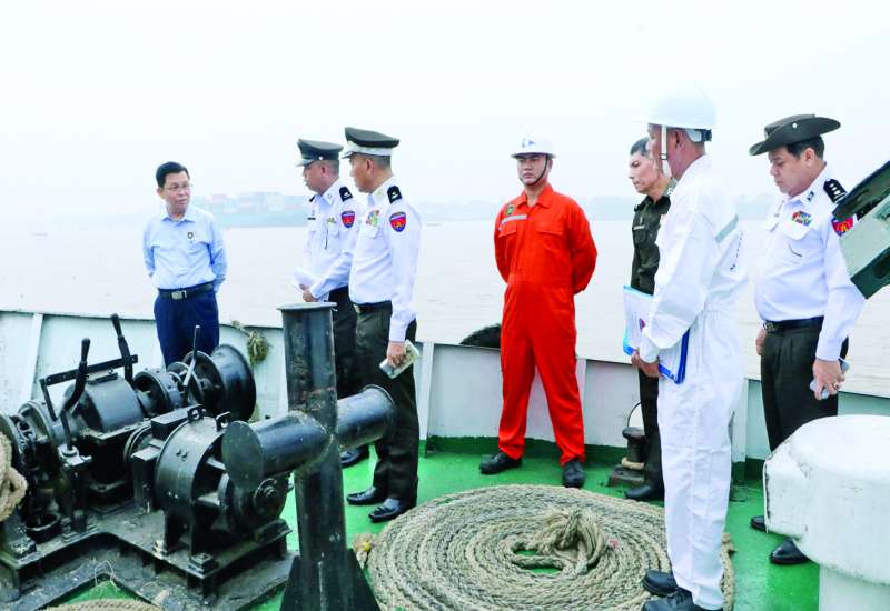 လူဝင်မှုကြီးကြပ်ရေးနှင့်ပြည်သူ့အင်အားဝန်ကြီးဌာန ပြည်ထောင်စုဝန်ကြီး ဦးမြင့်ကြိုင်သည် တာဝန်ရှိသူများနှင့်အတူ ယနေ့နံနက်ပိုင်းက ရန်ကုန်တိုင်းဒေသကြီး ကျောက်တံတားမြို့နယ် Yangon Innovation Centre (YIC) ရှေ့ရှိ ကျန်းမာရေးဆိပ်ခံတံတား၌ ဆိုက်ကပ်ထားသော ရေကြောင်းဆိုင်ရာ လူဝင်မှုကြီးကြပ်ရေးလုပ်ငန်းများ ဆောင်ရွက်သည့် ဌာနပိုင်ဇင်ယော်ရေယာဉ်များကို သွားရောက်ကြည့်ရှု စစ်ဆေးသည်။