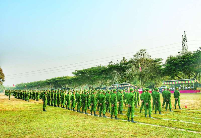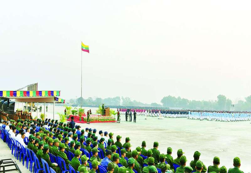 ပြည်သူ့စစ်မှုထမ်းသင်တန်းအမှတ်စဉ် (၂၂) သို့ တက်ရောက်ကြမည့် ရှမ်းပြည်နယ်အတွင်းရှိ နိုင်ငံ့သားကောင်းရတနာများအား ကြိုဆိုပွဲကို ယနေ့နံနက်ပိုင်းတွင် ကျိုင်းတုံမြို့ရှိ နယ်မြေခံသင်တန်းကျောင်း၌ပြုလုပ်ရာ တြိဂံဒေသတိုင်းစစ်ဌာနချုပ် ဒုတိယတိုင်းမှူး ဗိုလ်မှူးချုပ် ကျော်နိုင်စိုးနှင့် တာဝန်ရှိသူများ၊ အရာရှိ၊ စစ်သည်၊ မိသားစုဝင်များ၊ ပြည်နယ်၊ ခရိုင်၊ မြို့နယ်အဆင့် ဌာနဆိုင်ရာတာဝန်ရှိသူများ၊ မြန်မာနိုင်ငံရဲတပ်ဖွဲ့ဝင်များ၊ စစ်မှုထမ်းဟောင်းအဖွဲ့ဝင်များနှင့် တိုင်းရင်းသားယဉ်ကျေးမှုအဖွဲ့များ တက်ရောက်ကြသည်။