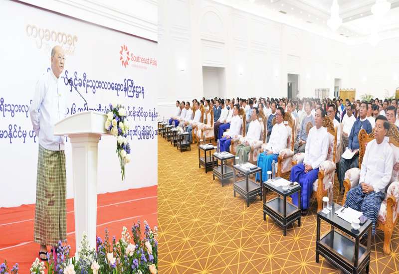 နေပြည်တော်ကောင်စီနယ်မြေ၊ ဇမ္ဗူသီရိမြို့နယ်ရှိ Naypyitaw State Academy (ဘွဲ့နှင်းသဘင်ခန်းမ) ဘက်စုံသုံးခန်းမဖွင့်ပွဲအခမ်းအနားကို ယနေ့နံနက်ပိုင်းတွင် ကျင်းပပြုလုပ်ရာ ပြည်ထောင်စုသမ္မတမြန်မာနိုင်ငံတော်ယာယီသမ္မတ နိုင်ငံတော်လုံခြုံရေးနှင့်အေးချမ်းသာယာရေးကော်မရှင်ဥက္ကဋ္ဌ ဗိုလ်ချုပ်မှူးကြီး မင်းအောင်လှိုင် တက်ရောက်ဖွင့်လှစ်ပေးပြီး အမှာစကားပြောကြားသည်။