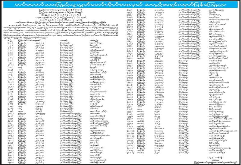 တပ်မတော်သား အမျိုးသားလွှတ်တော်ကိုယ်စားလှယ် အမည်စာရင်းကြေညာခြင်း