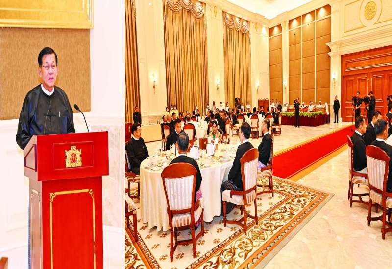 ပြည်ထောင်စုသမ္မတမြန်မာနိုင်ငံတော် ယာယီသမ္မတ နိုင်ငံတော်လုံခြုံရေးနှင့်အေးချမ်းသာယာရေးကော်မရှင်ဥက္ကဋ္ဌ ဗိုလ်ချုပ်မှူးကြီး မင်းအောင်လှိုင်က အပြည်ပြည်ဆိုင်ရာတရားရုံး (ICJ) ၌ တရားရင်ဆိုင်ကြားနာပွဲသို့ သွားရောက်ဖြေရှင်းခဲ့သည့် မြန်မာကိုယ်စားလှယ်အဖွဲ့အား ဂုဏ်ပြုညစာစားပွဲဖြင့် တည်ခင်းဧည့်ခံပွဲကို ယနေ့ညနေပိုင်းတွင် အမျိုးသားကာကွယ်ရေးနှင့် လုံခြုံရေးကောင်စီရုံး Banquet Hall ၌ ကျင်းပပြုလုပ်သည်။