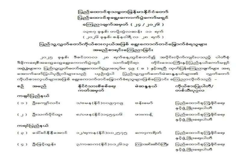 ပြည်သူ့လွှတ်တော်ကိုယ်စားလှယ်အဖြစ် ရွေးကောက်တင်မြှောက်ခံရသူများ အမည်စာရင်းကြေညာခြင်း