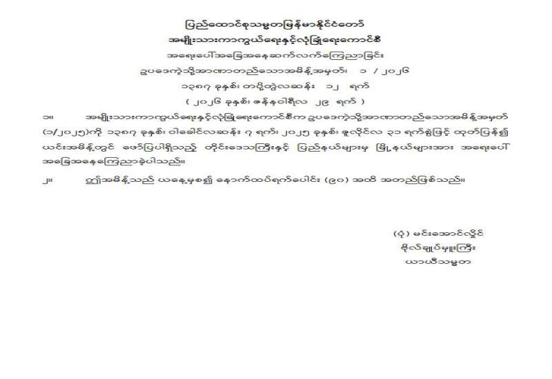 ရန်ကုန်မြို့နှင့် မန္တလေးမြို့အတွက် ရည်ညွှန်းလက်ကားဈေးနှုန်းများနှင့် ပြည်ထောင်စုနယ်မြေ နေပြည်တော်၊ တိုင်းဒေသကြီး/ပြည်နယ် မြို့တော်များအတွက် ရည်ညွှန်းလက်လီဈေးနှုန်းများ