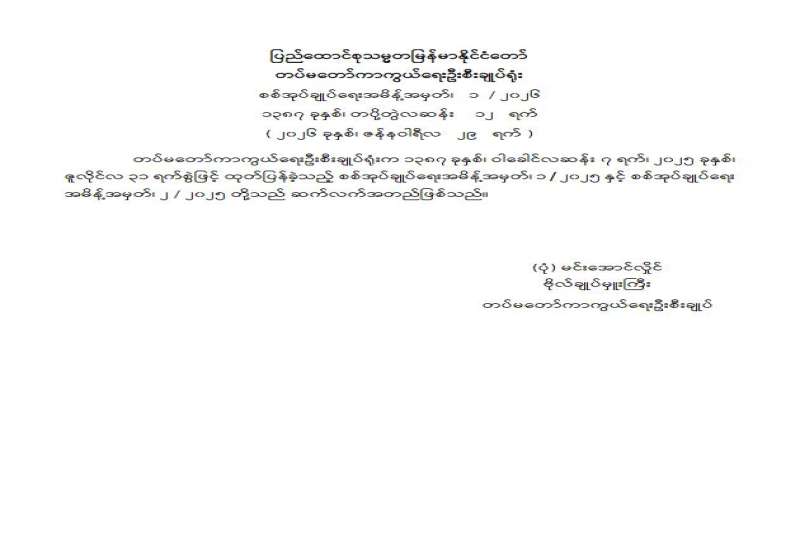 ဝန်ထမ်းအဖွဲ့အစည်းအကြီးအမှူးများ ပြောင်းရွှေ့ခန့်ထားခြင်းနှင့် ဝန်ထမ်းအဖွဲ့အစည်းအကြီးအမှူးများ အတည်ပြုခန့်ထားခြင်း