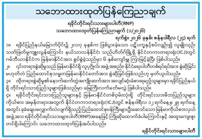 ဂမ်ဘီယာနိုင်ငံနှင့် မြန်မာနိုင်ငံတို့၏ အမှုနှင့်ပတ်သက်၍ ကြားနာပွဲ (Oral Hearing) ကို ဇန်နဝါရီ ၁၂ ရက်မှ ၂၉ ရက်အထိ နယ်သာလန်နိုင်ငံ သည်ဟိတ်ဂ်မြို့ရှိ အပြည်ပြည်ဆိုင်ရာတရားရုံး၌ ပြုလုပ်လျက်ရှိရာ ဂမ်ဘီယာက ဒုတိယအကျော့ လျှောက်လဲမှုကို ယမန်နေ့ ဒေသစံတော်ချိန် နံနက် ၁၀ နာရီက စတင်သည်။