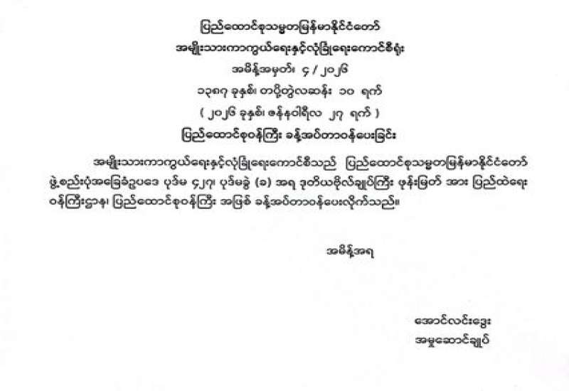 ပြည်ထောင်စုဝန်ကြီး ခန့်အပ်တာဝန်ပေးခြင်း