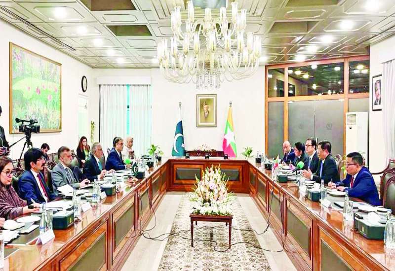 ပါကစ္စတန်နိုင်ငံ ဒုတိယဝန်ကြီးချုပ်နှင့် နိုင်ငံခြားရေးဝန်ကြီး မစ္စတာမိုဟာမက် အီရှပ်ဒါး၏ ဖိတ်ကြားချက်အရ ပါကစ္စတန်နိုင်ငံ၌ တရားဝင်ခရီးစဉ်ရောက်ရှိနေသည့် နိုင်ငံခြားရေးဝန်ကြီးဌာန ပြည်ထောင်စုဝန်ကြီး ဦးသန်းဆွေ ဦးဆောင်သည့် ကိုယ်စားလှယ်အဖွဲ့နှင့် ပါကစ္စတန်နိုင်ငံ ဒုတိယဝန်ကြီးချုပ်နှင့် နိုင်ငံခြားရေးဝန်ကြီးဦးဆောင်သည့် ကိုယ်စားလှယ်အဖွဲ့တို့သည် ယနေ့ကျင်းပသည့် နှစ်နိုင်ငံအစည်းအဝေးသို့ တက်ရောက်ကြသည်။