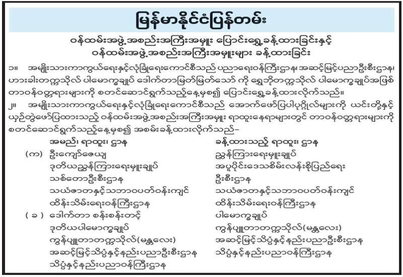 ၁။ ပြန်ကြားရေးဝန်ကြီးဌာနအနေဖြင့် ပုံနှိပ်ခြင်းနှင့် ထုတ်ဝေခြင်းလုပ်ငန်းနည်းဥပဒေများ ထွက်ရှိသည့် ၁၀-၁၀-၂၀၁၄ ရက်နေ့မှစ၍ ပုံနှိပ်ခြင်း၊ ထုတ်ဝေခြင်းနှင့် သတင်းအေဂျင်စီလုပ်ငန်း အသိအမှတ်ပြုလက်မှတ်များအား ၅ နှစ် သက်တမ်းခွင့်ပြုပေးခဲ့ပါသည်။