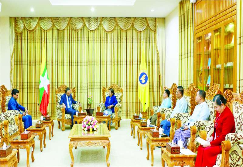 ကာကွယ်ရေးဝန်ကြီးဌာန ပြည်ထောင်စုဝန်ကြီး ဗိုလ်ချုပ်ကြီး မောင်မောင်အေးအား ဘယ်လာရုစ်ကာကွယ်ရေးဝန်ကြီးဌာန နိုင်ငံတကာစစ်ဘက် ပူးပေါင်းဆောင်ရွက်ရေးဌာနကြီး၏ အကြီးအကဲနှင့် လက်ထောက်ကာကွယ်ရေးဝန်ကြီး Major General Valeriy Aleksandrovich Revenko က ယနေ့မွန်းလွဲပိုင်းတွင် ပြည်ထောင်စုဝန်ကြီးရုံး ဧည့်ခန်းမ၌ ဂါရဝပြုလာရောက်တွေ့ဆုံသည်။