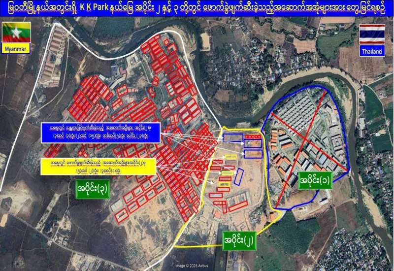 မြန်မာနိုင်ငံအစိုးရအနေဖြင့် အွန်လိုင်းလိမ်လည်လောင်းကစားမှုများ အများဆုံးအခြေချလုပ်ကိုင်လျက်ရှိကြသည့် ရွှေကုက္ကိုလ်နယ်မြေနှင့် KK Park နယ်မြေများရှိ တရားမဝင်အဆောက်အအုံများအတွင်း ဝင်ရောက်ရှင်းလင်း၍ အွန်လိုင်းလိမ်လည်လောင်းကစားမှုလုပ်ငန်းစဉ်များတွင် အသုံးပြုခဲ့သည့် သိမ်းဆည်းရမိပစ္စည်းများအား စနစ်တကျဖျက်ဆီးခြင်းနှင့် တရားမဝင်အဆောက်အအုံများအား စနစ်တကျဖြိုချဖျက်ဆီးခြင်းများကို အဖွဲ့စုံပါဝင်သည့် ပူးပေါင်းအဖွဲ့ဖြင့် ဆောင်ရွက်လျက်ရှိရာ ယနေ့တွင်လည်း KK Park နယ်မြေအတွင်းရှိ တရားမဝင်အဆောက်အအုံ ၂၆ လုံးကို ထပ်မံဖြိုချဖျက်ဆီးခဲ့ကြောင်း သိရှိရသည်။