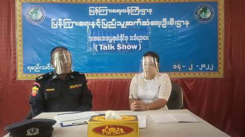 ရမည်းသင်းခရိုင် ပြန်ကြားရေးနှင့်ပြည်သူ့ဆက်ဆံရေးဦးစီးဌာန လူထုအခြေပြုဗဟိုဌာန (Community Centre) ခန်းမ၌ သဘာဝဘေးအန္တရာယ်ဆိုင်ရာ အသိပညာပေး Talk Show ပြုလုပ်