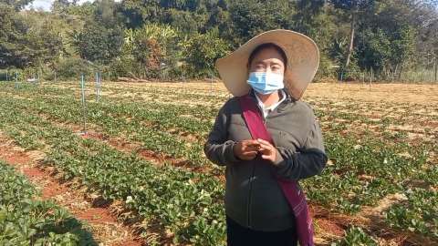 ဟိုပုံးမြို့တွင် စတော်ဘယ်ရီစတင်ထွက်ချိန်၌ စျေးကောင်းရရှိ