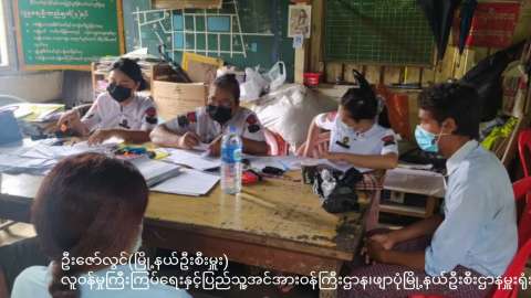 ကျောက်တန်းမြို့နယ် ပြန်/ဆက်ဦးစီးဌာန Community centre တွင် ကိုဗစ်-၁၉ ရောဂါ ဖြစ်ပွားစဉ်ကာလ စေတနာ့ဝန်ထမ်းများ၏ ပူးပေါင်းဆောင်ရွက်မှု
